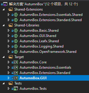 此图为秋之盒目前的项目结构,其中部分项目包含实际的逻辑代码,而部分项目仅作为编译目标使用。